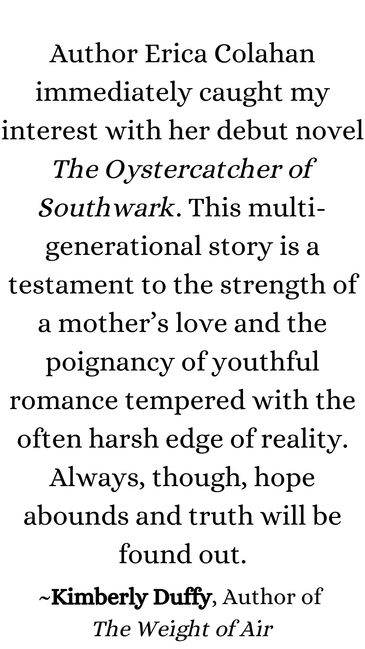 "Oystercatcher of Southwark is a masterfully crafted tapestry of powerful and poignant stories, with characters that burrow into your heart and refuse to be forgotten. As a homeschooling mother, my time for reading is a luxury often sacrificed to the demands of daily life and the desperate need for sleep. However, Colahan’s characters were constantly pulling on the sleeves of my thoughts, begging me to know more about them, making it near impossible for me to put her book down."